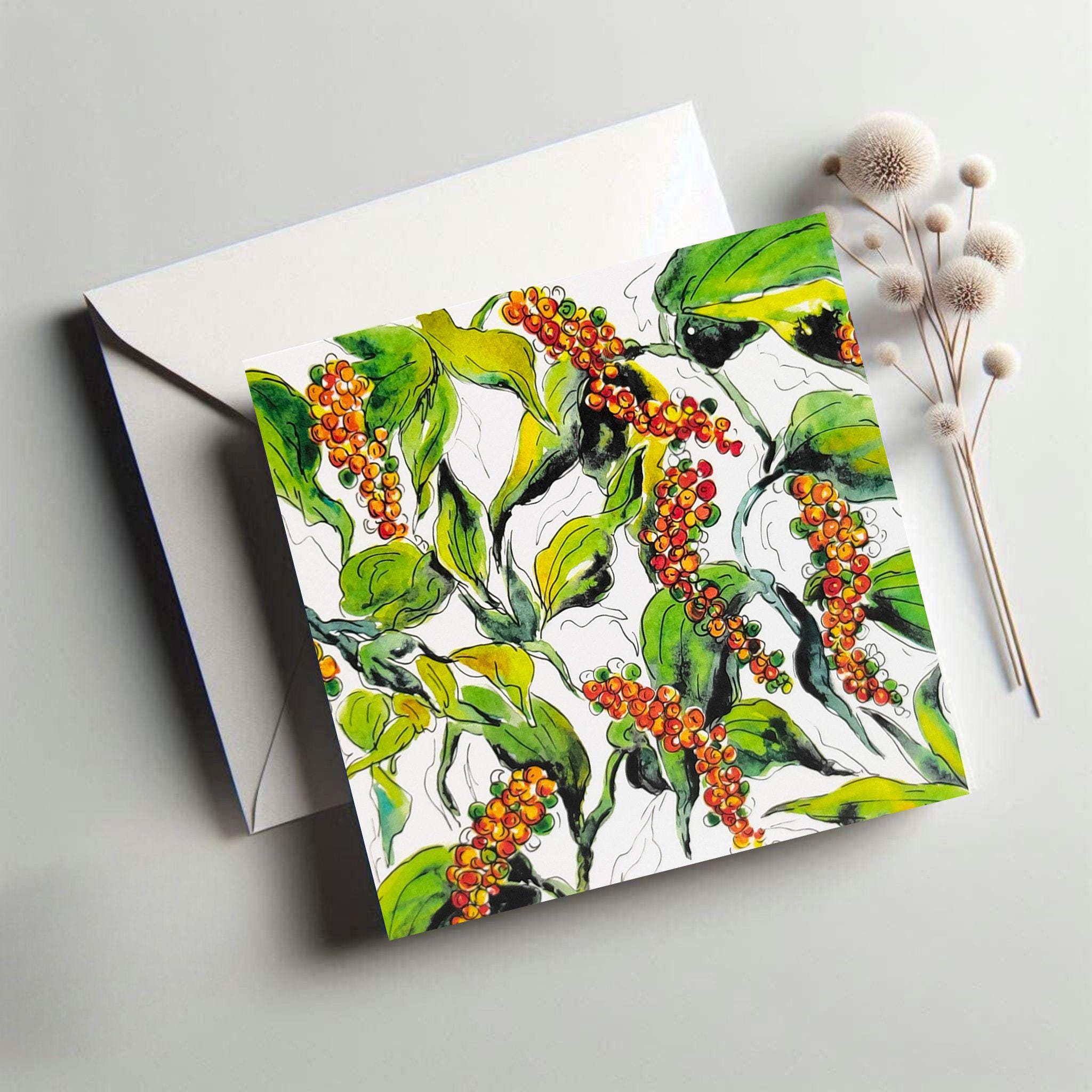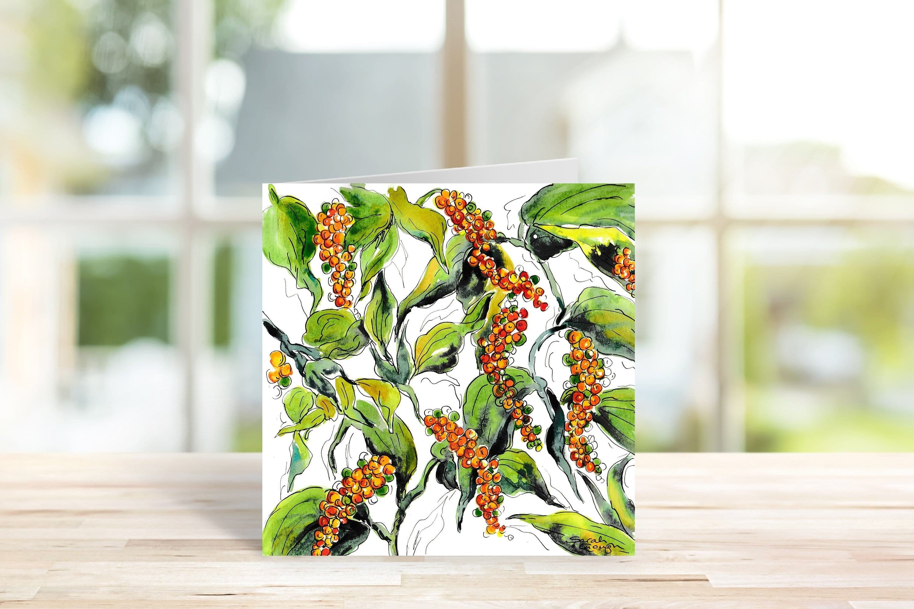 Indulge in the beauty of nature with this black pepper plant, textured, art card!
