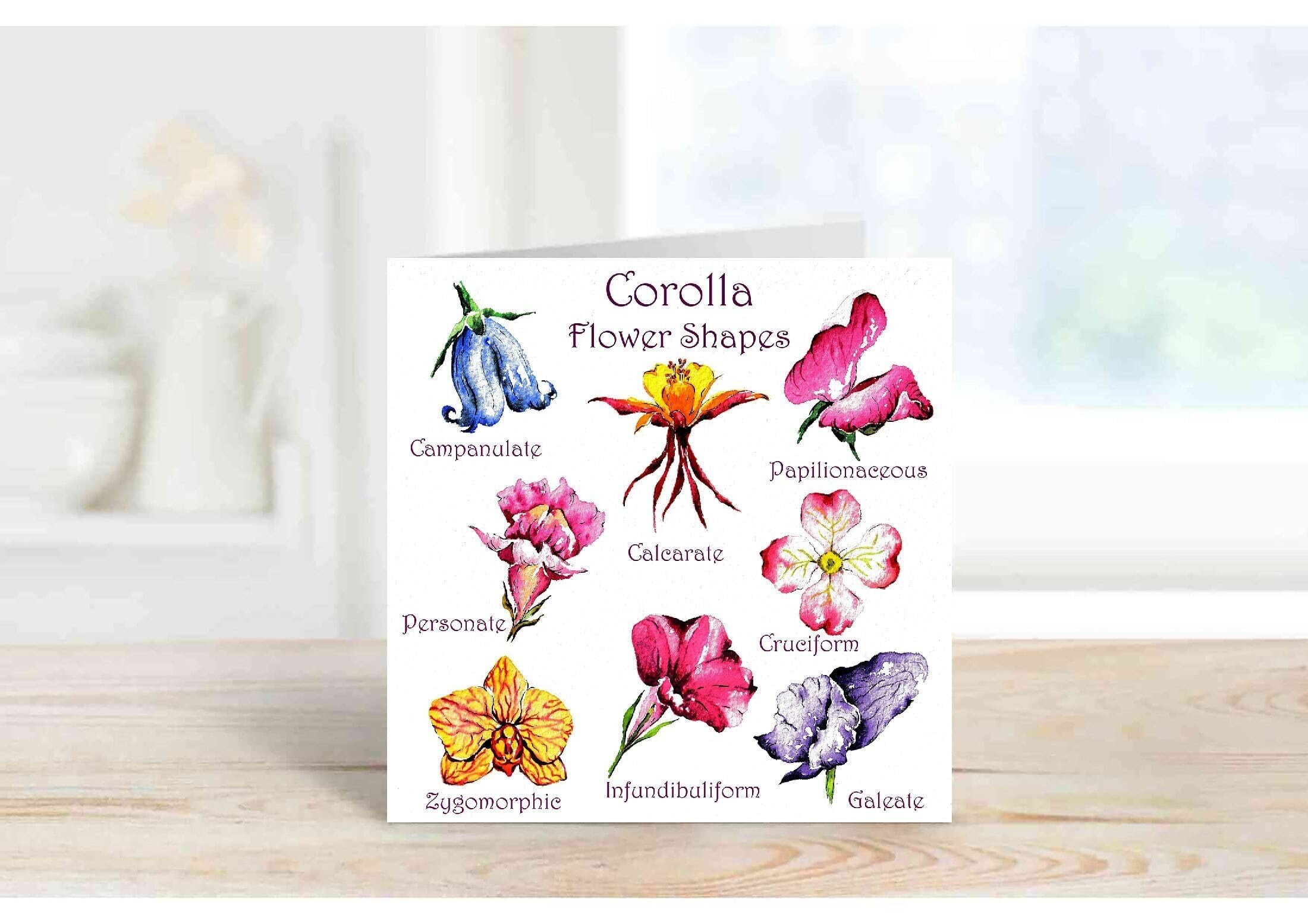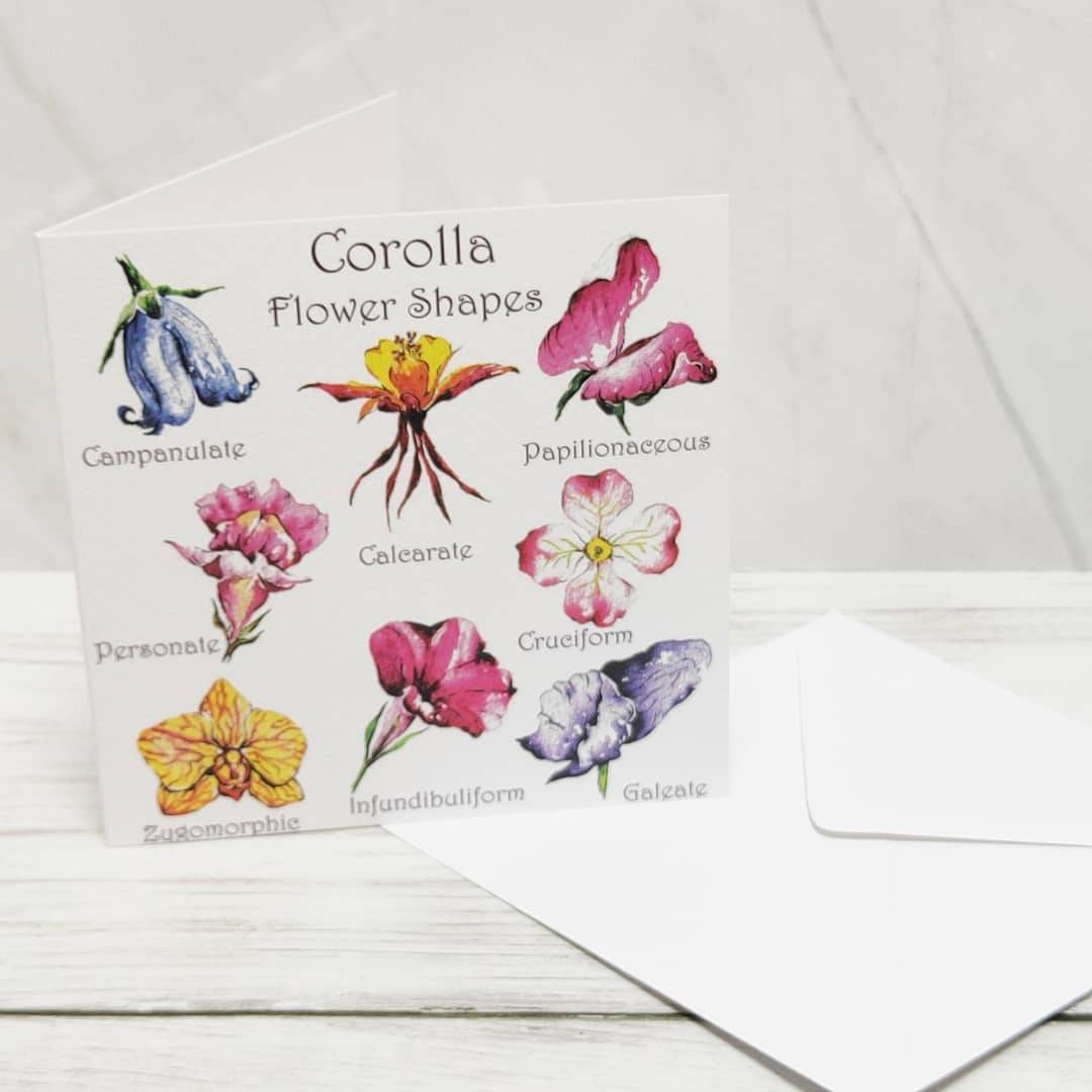 Unleash the fascinating world of floral architecture with this captivating art card! Explore the diverse "corolla," the beautiful shapes and forms that flowers take - a botanical visual of flowers!