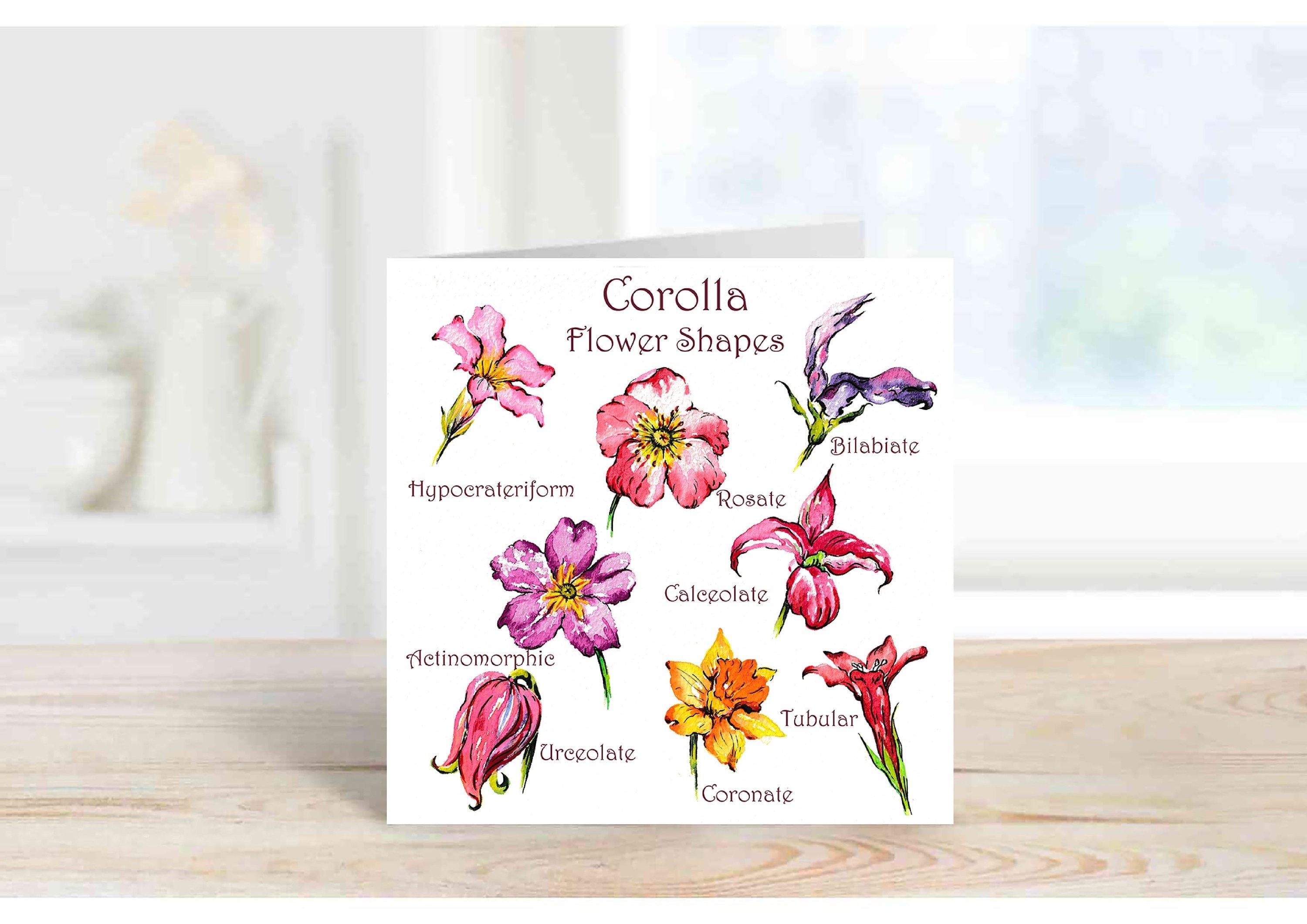 Unleash the fascinating world of floral architecture with this captivating art card! Explore the diverse "corolla," the beautiful shapes and forms that flowers take - a botanical visual of flowers!